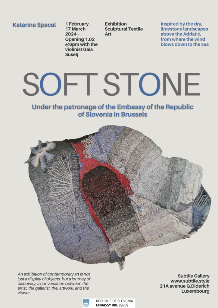 Textile Art Exhibition: Soft Stone by Katarina Spacal (SLO) 01/02-18/03/24_Under the Patronage of the Embassy of the Republic of Slovenia in Brussels